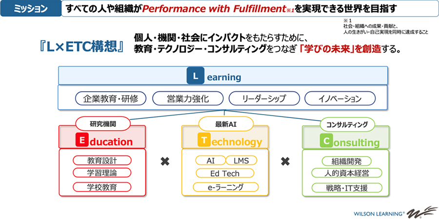 ウィルソン・ラーニングは、単なる「ラーニング(L)」の会社に留まらず、次の10年を見据えて事業領域を拡大する方針です。