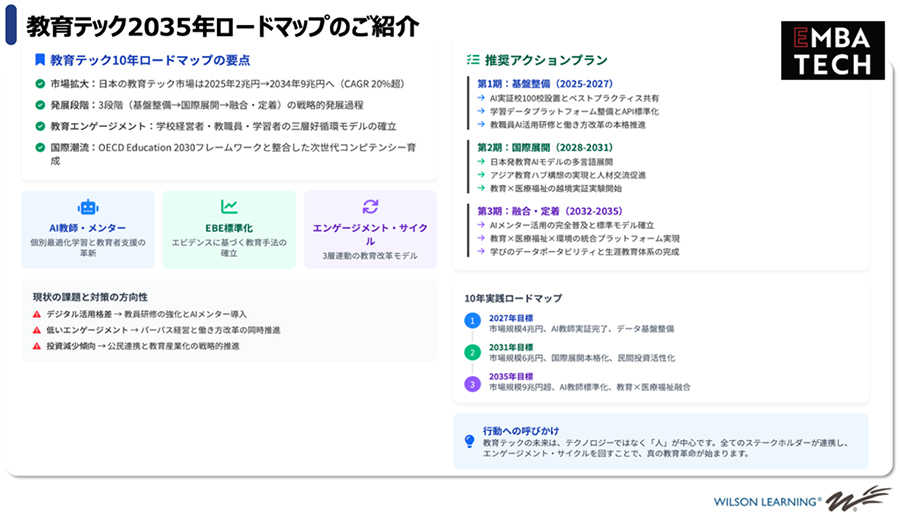 教育テック大学院大学のロードマップにも示していますが、生成AIを活用したAIメンターやAIティーチャーは、今後10年以内に完全に普及するのではないかと考えています。